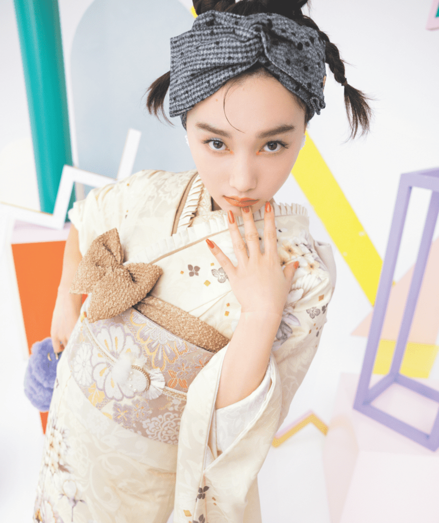 * 小物:クリアビーズの帯留めやガラス素材の髪飾りで、透明感をプラス。