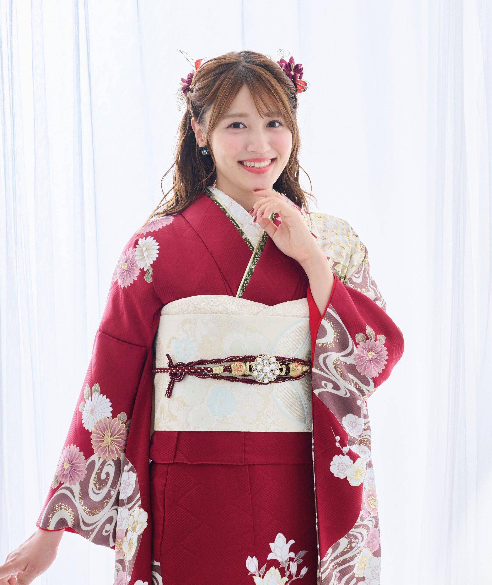 振袖は首元が詰まっている分、顔の大きさが強調されやすい衣装。