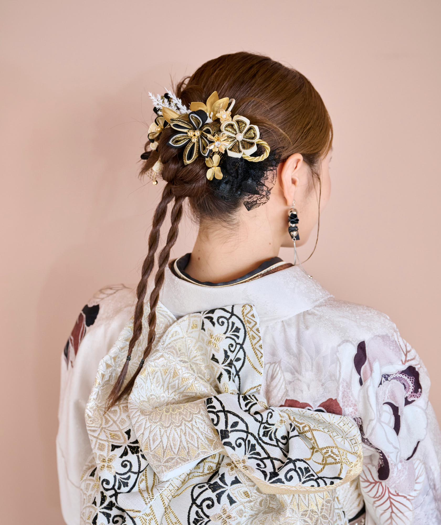 振袖の豪華な刺繍や光沢に髪の質感が負けてしまうと、全体が少し残念な印象に…。