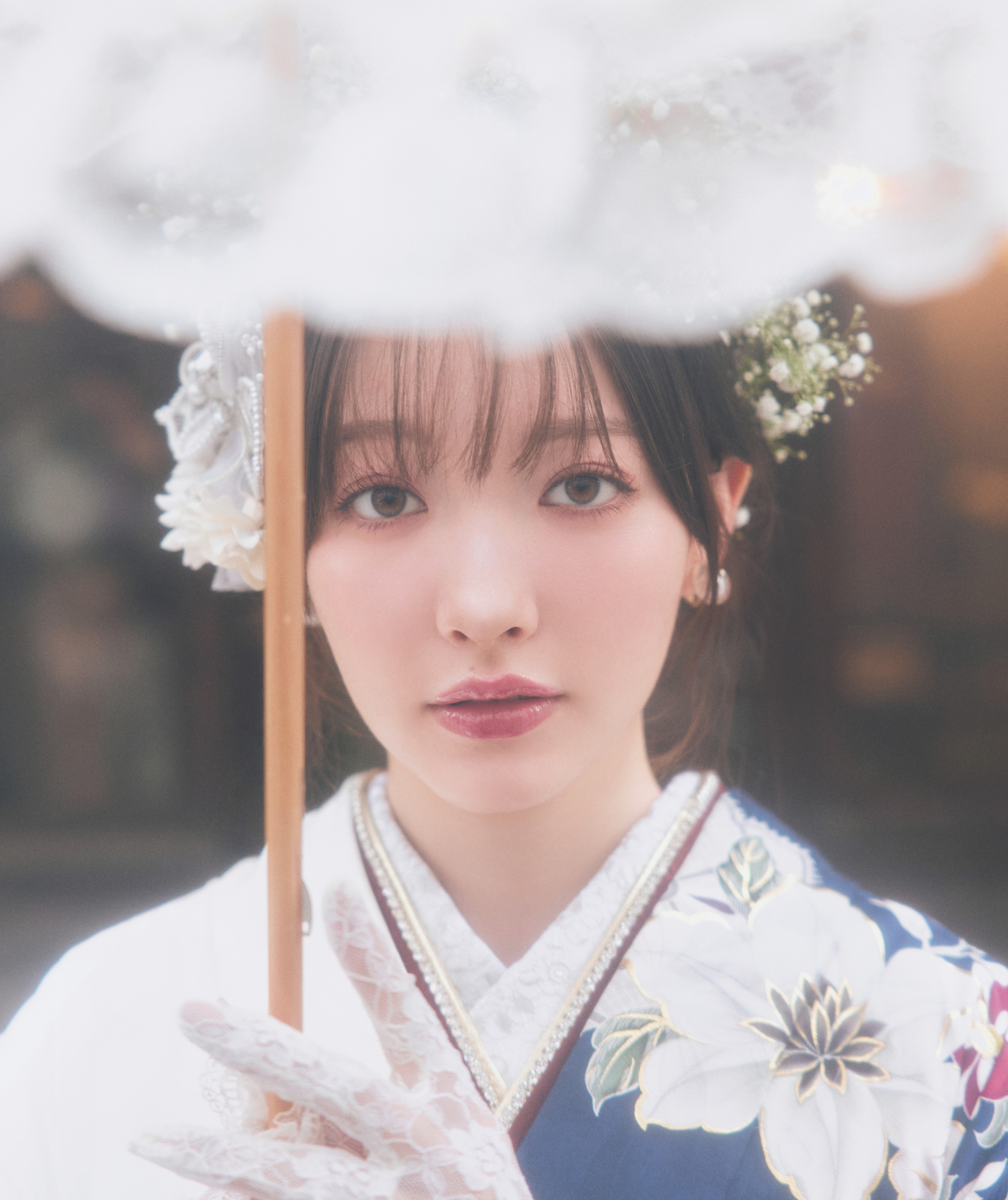 締め色を使わずに、マスカラもブラウンで統一すると、振袖の柔らかい雰囲気とマッチして、妖精のような透明感が生まれます🪽